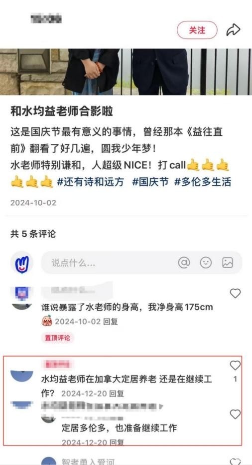 2024月,一名网友晒出与水均益的合影,并回应粉丝提问时表示:
