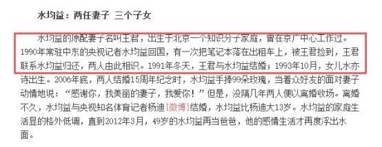 对此,水均益澄清称,其实早年就已与王君协议离婚。